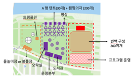 행사장 공간 구성 5개 존으로 운영(리딩존,놀이존, 공연존, 체험존, 운영본부)
