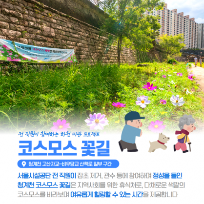 - 시민께 아름다운 청계천 중하류에 새롭게 조성된 코스모스 길을 홍보함