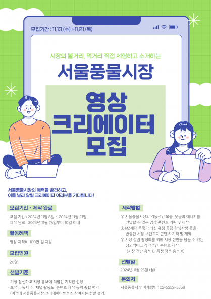 크리에이티브포스 대상 ★서울풍물시장 홍보 캠페인★ 참가자를 모집합니다.