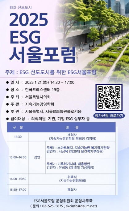 - 주제 : ESG 선도도시를 위한 ESG서울포럼