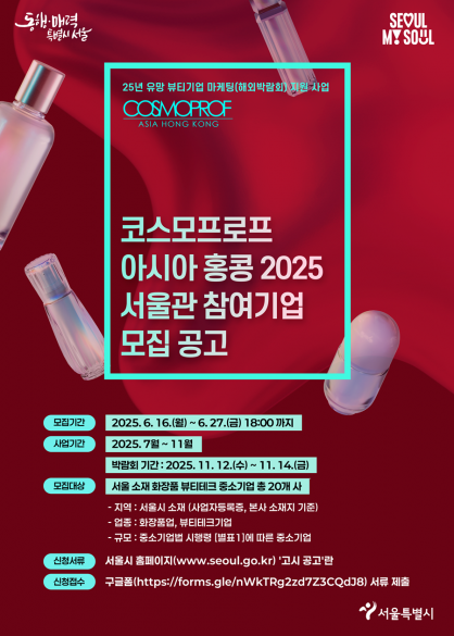 서울시 뷰티패션과와 협업하여, 크리에이티브포스 대상 '25 유망 뷰티기업 제품 홍보 콘텐츠 제작 캠페인 참가자를 모집합니다.