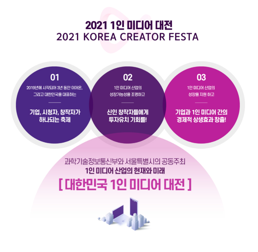 대한민국 1인 미디어 대전 관련 설명 : https://www.koreacreatorfesta.co.kr/about/kcf.php