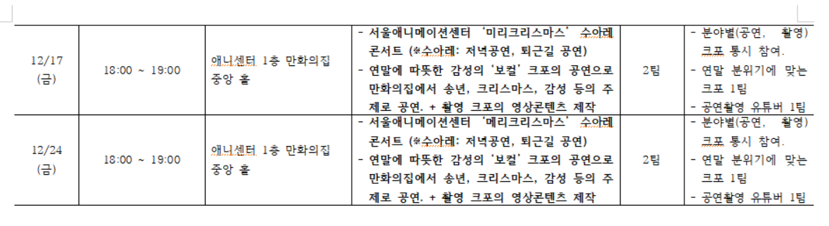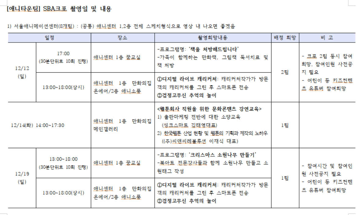 5. 콘텐츠 제작 : 12/28일(화) 오후 1시까지