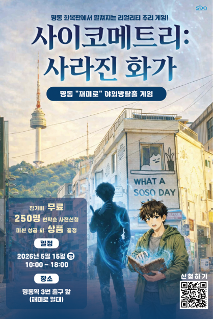 <2026 명동 재미로 야외방탈출게임> 행사를 스케치하고 관련 프로그램 참여 및 홍보하는 콘텐츠 캠페인입니다.